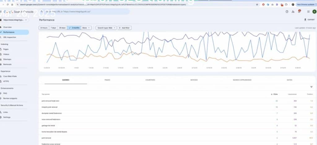 You might discover you’re showing up for “junk removal cost” or “junk removal near me free estimate”—keywords you haven’t even written content for. Now you know what pages to build next.