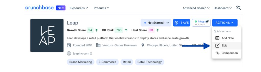 Complete your company profile to maximize your appearance in search results and improve your Crunchbase Rank.