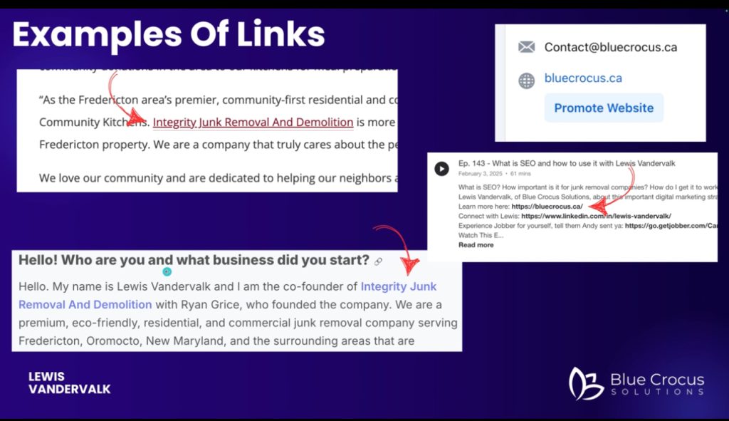 For example, Integrity Junk Removal gets backlinks from: